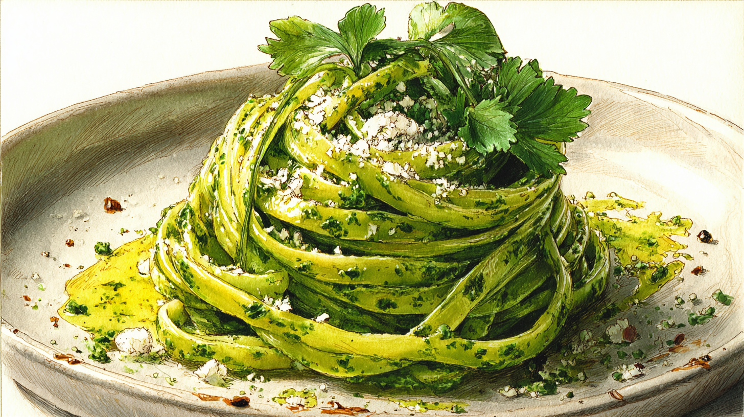 7. Escurre la pasta y agrégala directamente a la sartén con la salsa verde. Mezcla bien durante 1-2 minutos hasta que toda la pasta esté cubierta con la salsa.